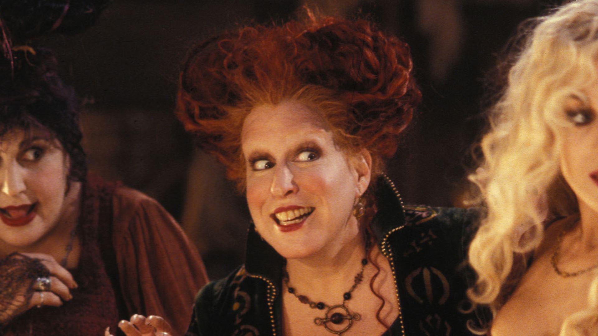 “Amok, amok, amok!” Bette Midler, Sarah Jessica Parker, and Kathy Najimy ham it up gloriously as the Sanderson sisters, three ghoulish gals resurrected on a Halloween night in Salem, Massachusetts, three hundred years after they were hanged for witchcraft. A 90s nostalgia classic in a fright wig, it’s irresistible fun, never more so than when Midler busts out a bewitching version of “I Put a Spell on You.”