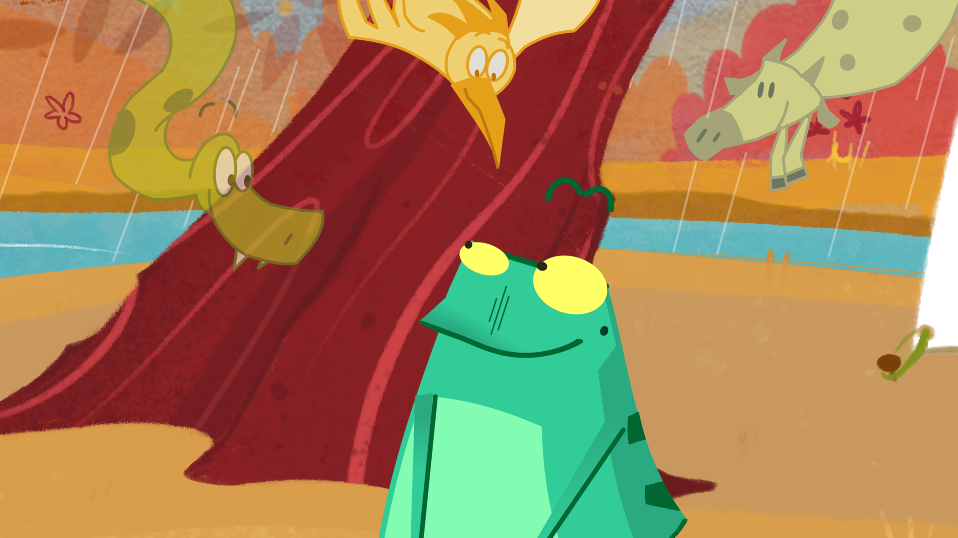In a pond like many others lives a somewhat solitary toad who has behaviors that others do not understand. One day, an event leads the toad to make himself better known, reveal his unexpected positive sides, and be appreciated—while always remaining himself.